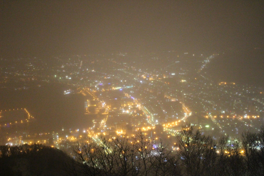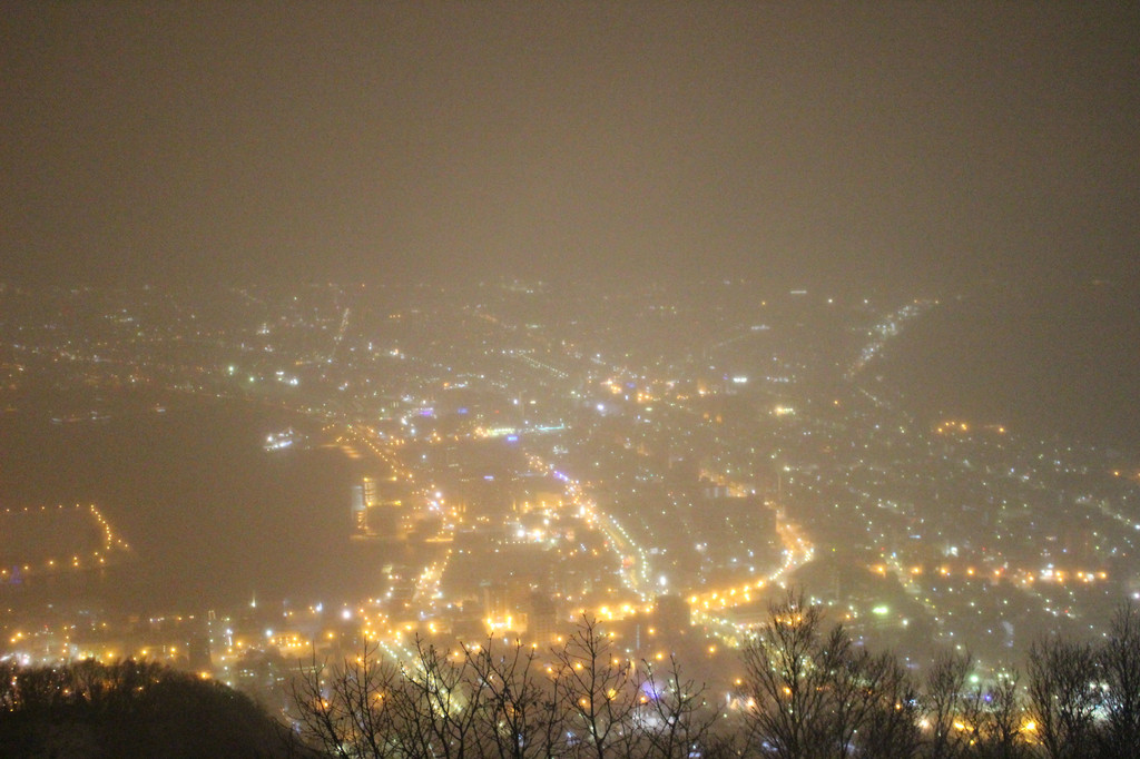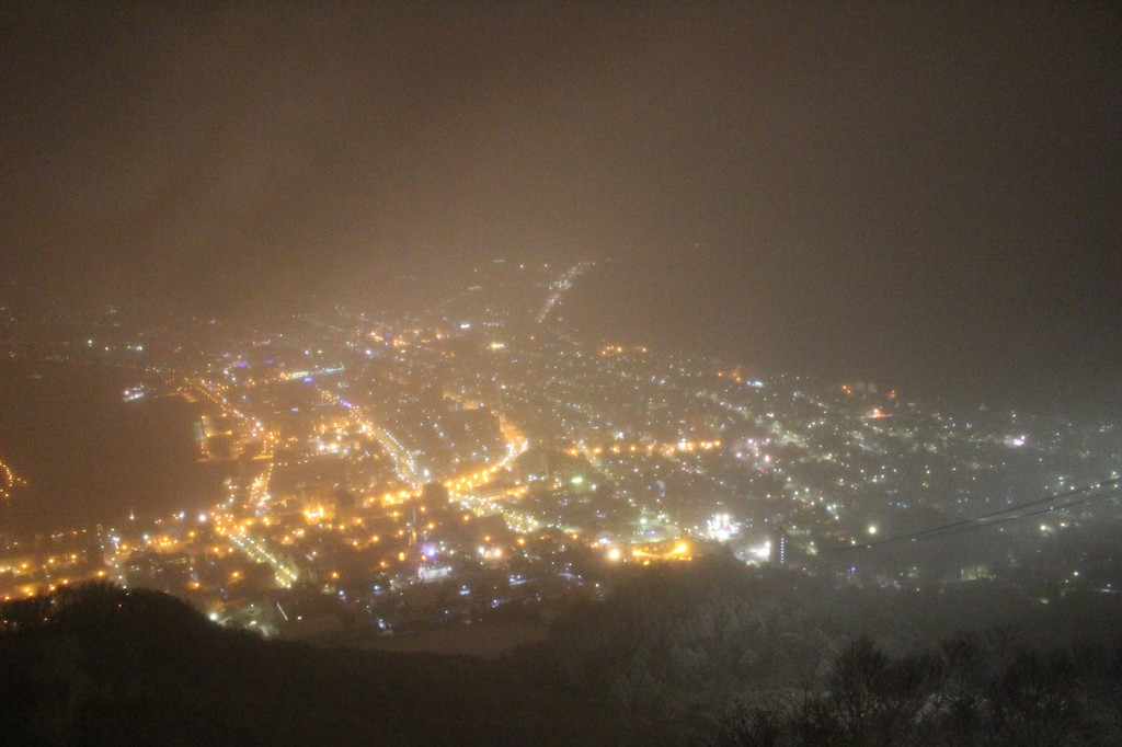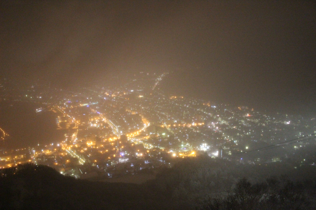 函馆山上来了,开始函馆夜景模式,大雪天,能不能看到夜景,就是拼人品了,从目前的情况看,对于我们的人品是一个极大的考验呀。从下面都看不到山,全是云,不知道从上面能不能看到夜景?不管了,上山,人品小宇宙我们等着你的爆发。