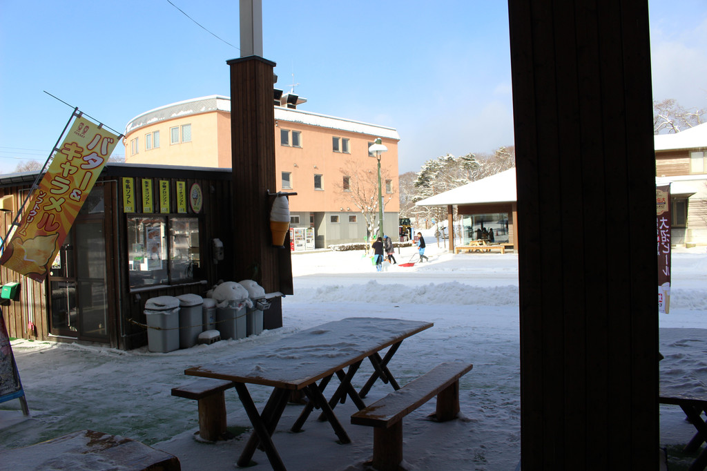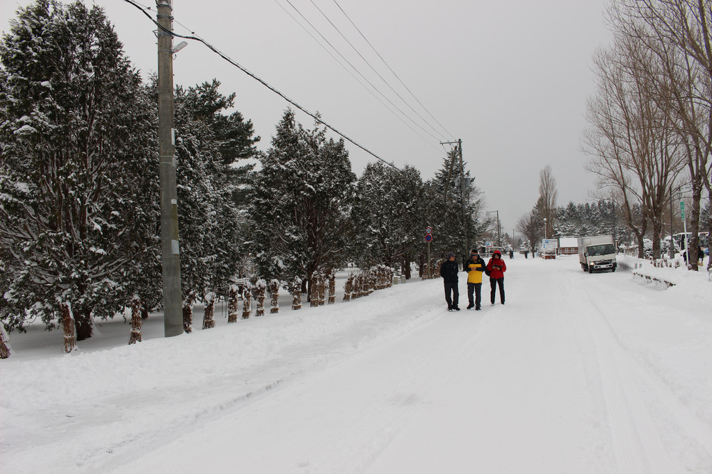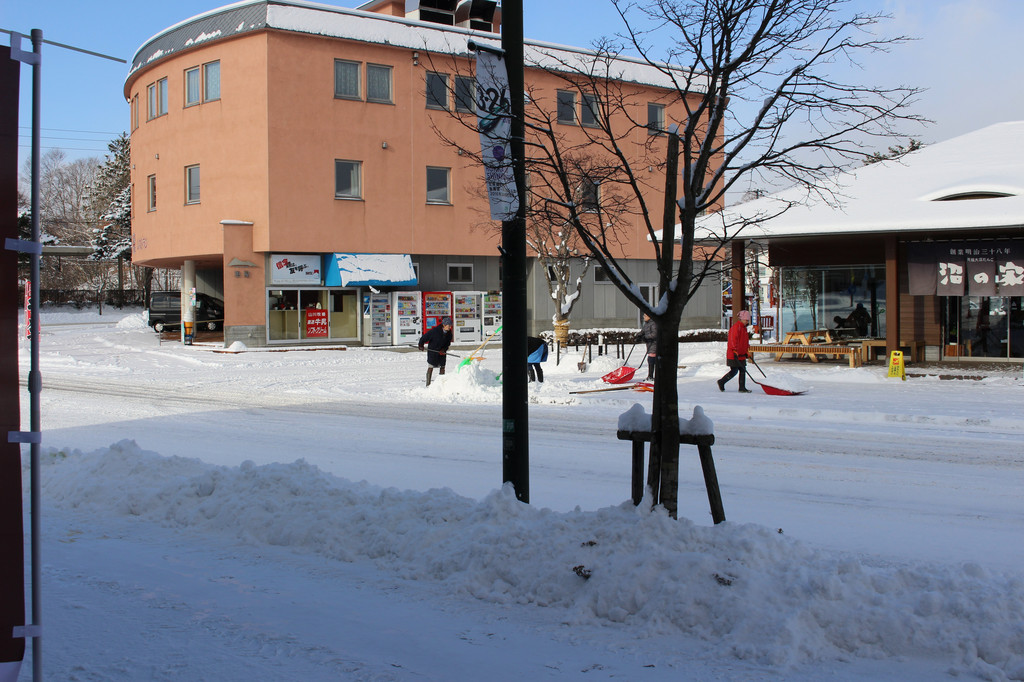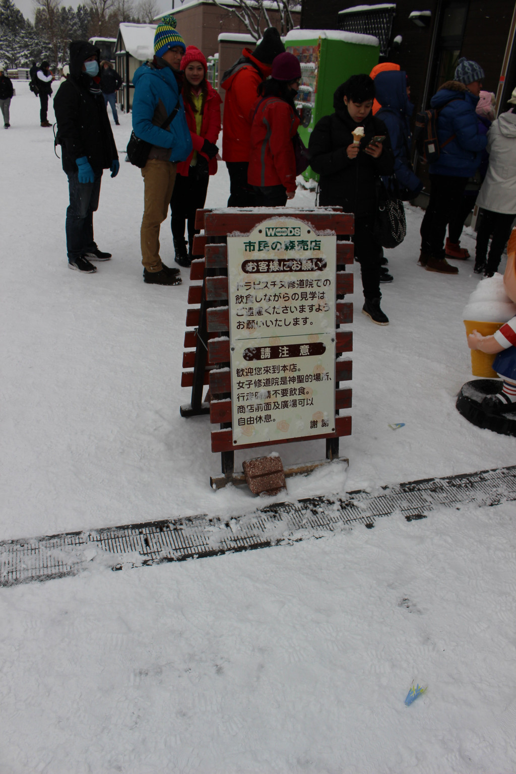 看着满地都是雪,但是不滑,不过推荐大家一个好东西,在北海道的便利店和711中都买的,就是一种鞋套,底下带钉子的,这样可以防滑。