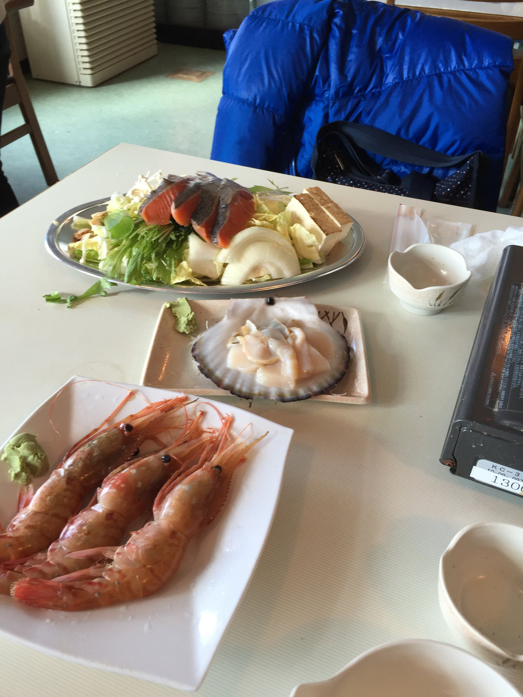 今天终于有时间了,开始整理一下照片,第二天中午的午餐是石狩锅料理,可以配上帝王蟹一起吃,而且这里的帝王蟹可以生着吃。鱼和熊掌不可兼得,人家就要弄到一起,哈哈哈。