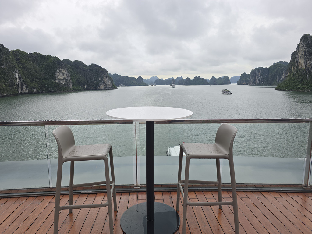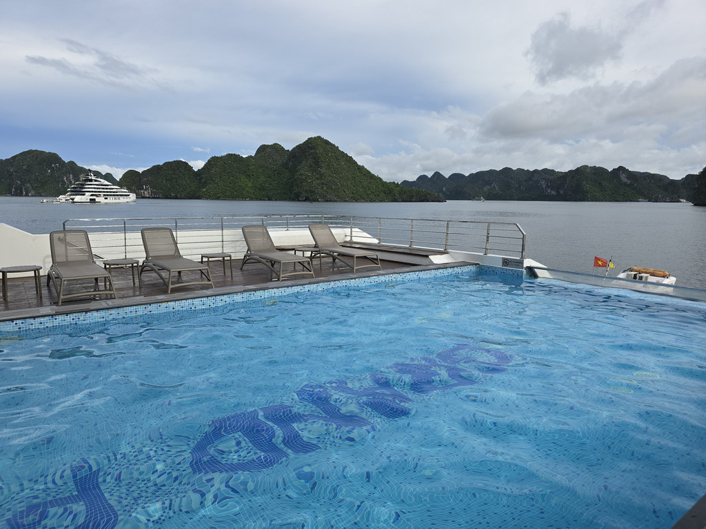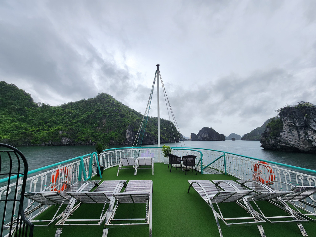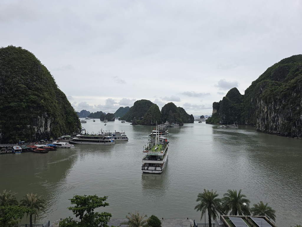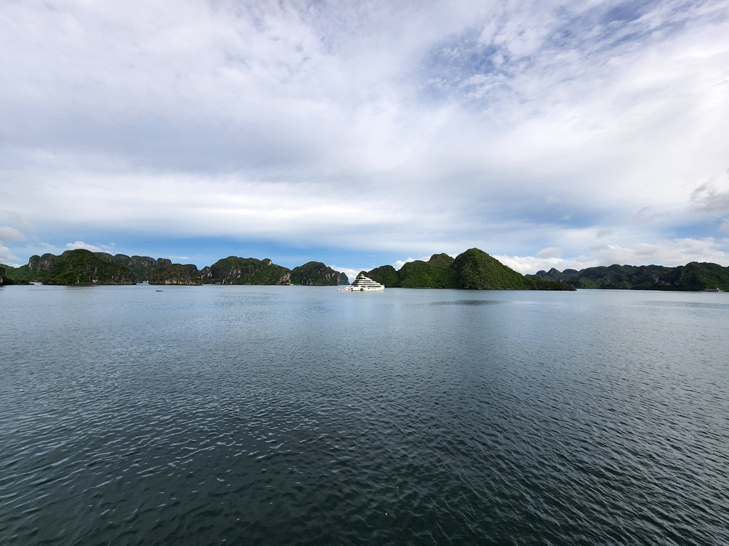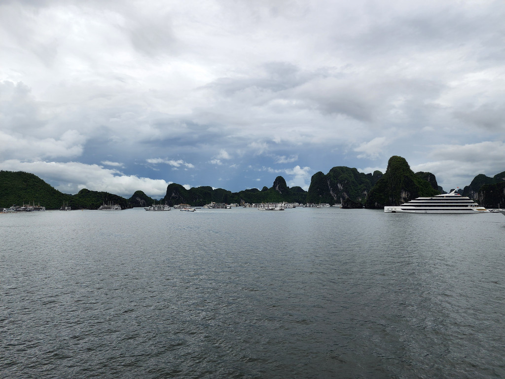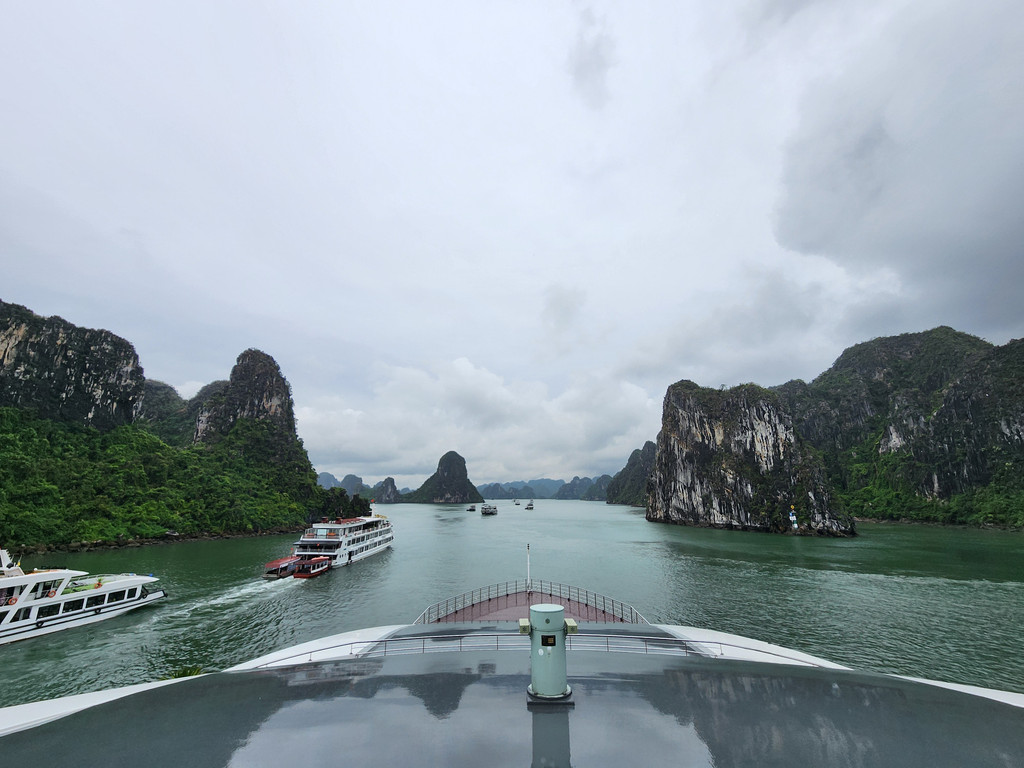 邮轮到达下龙湾中心地带之后就不再移动,周围也停满了大大小小的邮轮,所以无论用餐还是安睡时,都是平稳的,略微失望,还以为邮轮会四处巡游,结果只是从码头到夜泊点而已。