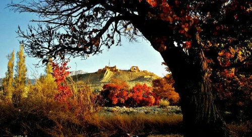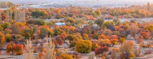 渐红的杏树叶、飘落的核桃叶、连片的果园、相立其间的古树怪石,群峰起伏的山丘,秋天的所有多姿色彩和壮阔山河,在庙尔沟你都可以尽收眼底。