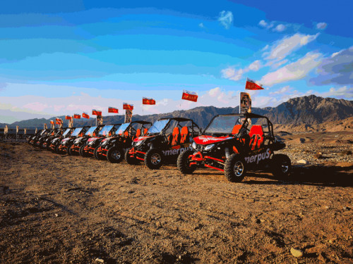 戈壁越野绝对是嗨玩的重头戏,越野赛道主要分为大圈赛道和小圈赛道,越野赛车乃是专业级四轮,后驱,2人座。30分钟超值体验,风驰电掣,英姿飒爽,上演现实版的速度与激情。