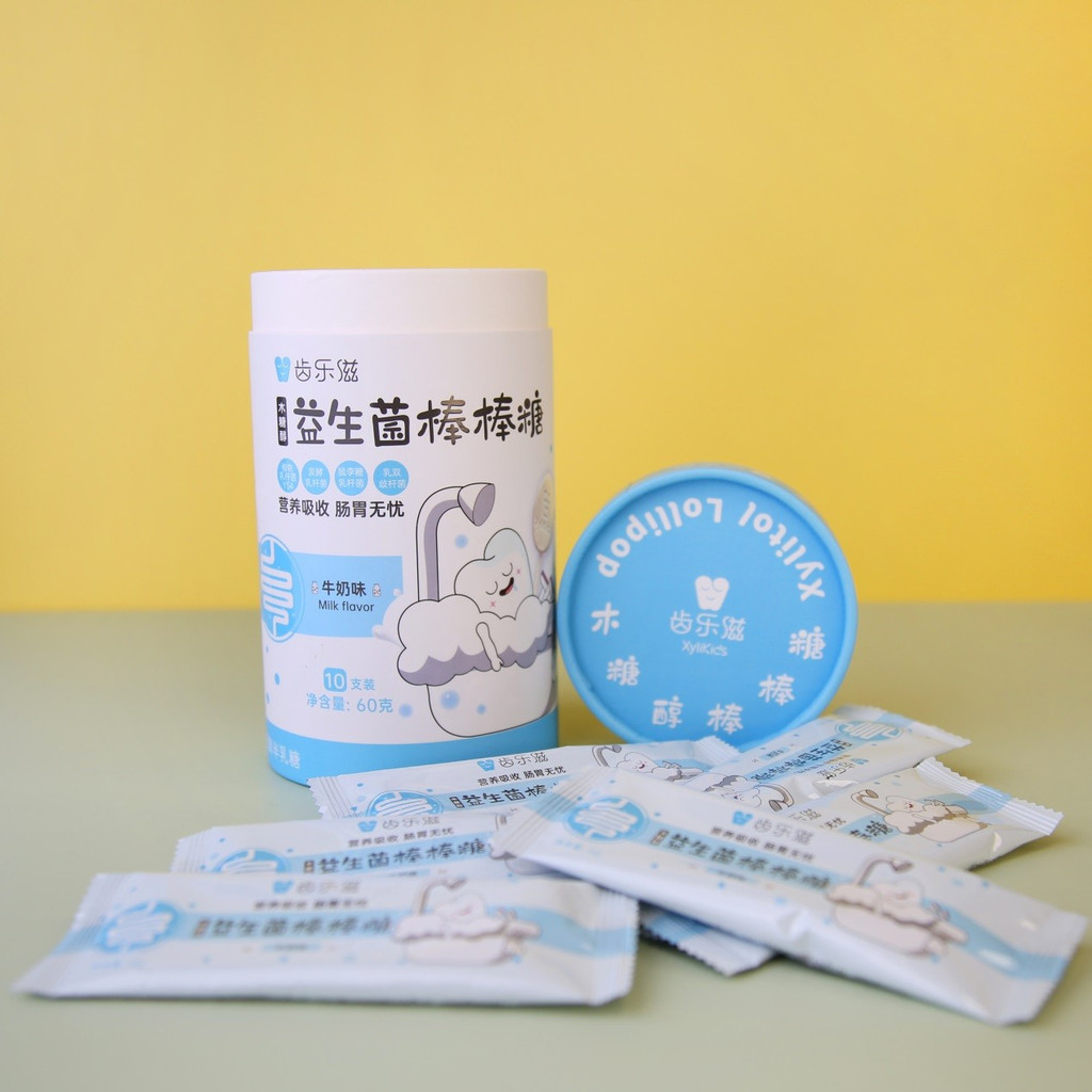 棒棒糖对于儿童群体有着天然的吸引力,其酸酸甜甜的味道、萌趣的造型吸引着孩子。但是糖摄入过多对宝宝身体的影响使得家长们望而却步,齿乐滋棒棒糖的出现缓解了这一尴尬境地。