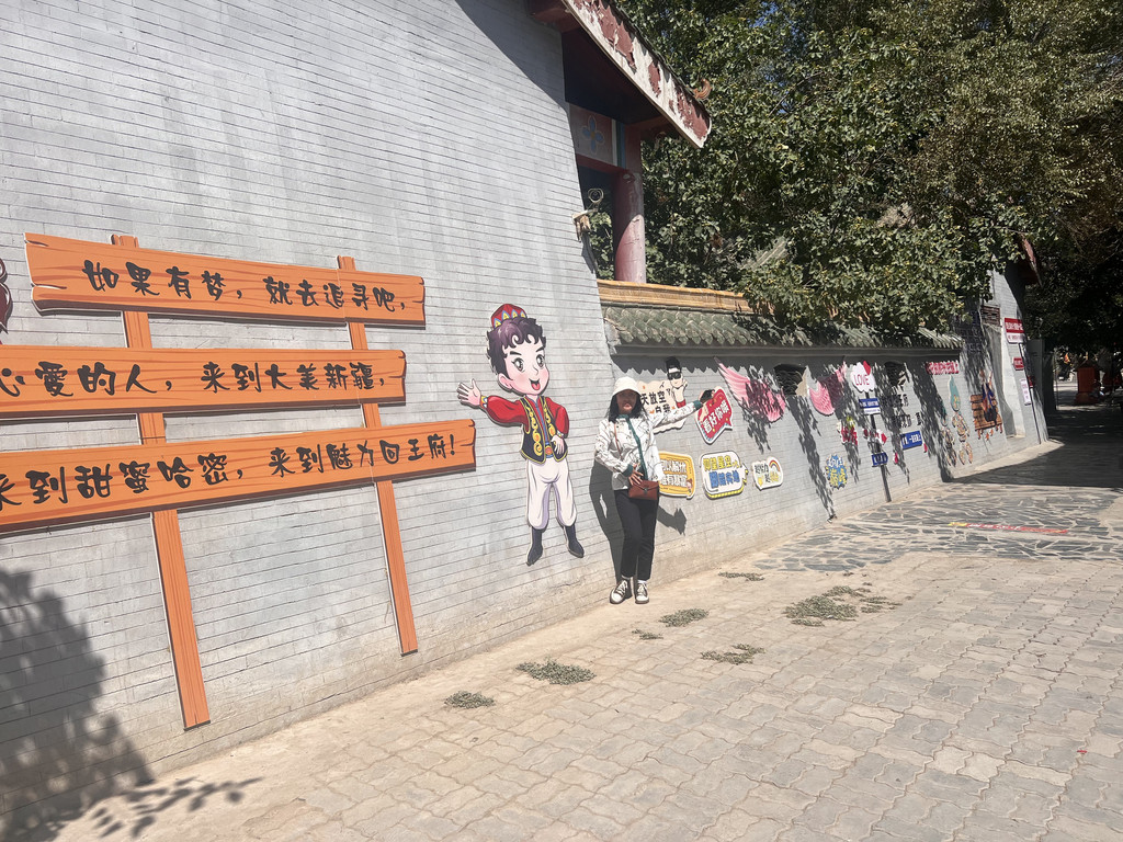 没有早起床因为今天的行程安排去往300多公里的哈密,路程不远不需要着急。哈密市是全国唯一的管辖面积达到8万平方公里的城市,约为北京市面积的5倍。哈密市盛产哈密瓜、大枣、棉花、葡萄等农产品,8月的哈密瓜和早葡萄都上市了,可以在这里品尝一下。中午1点多我们到达哈密伊州区的“驿楼兰新疆菜”团了一个102元的双人餐,里面有我还没吃过的缸子肉。