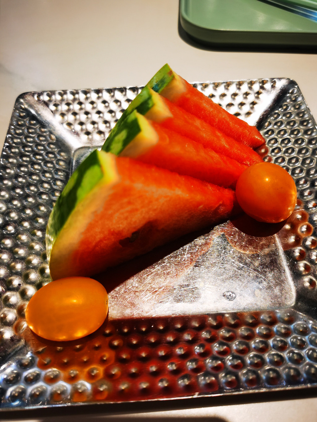 饭店赠送了西瓜、小凉菜,两碗酸奶一如既往的真“酸”奶,里面搭配的无花果酱,味道很清甜。