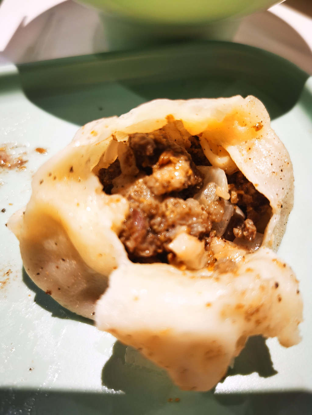 薄皮包子:维吾尔语称之为“皮特尔曼达”或“皮提曼塔”,是新疆一道极具地方特色的知名小吃,深受外地游客与当地民众的喜爱。薄皮包子色白油亮,皮薄如纸,几乎可以透亮,肉馅饱满,汁水丰富。其制作方法颇为讲究,需选用上好的羊肉,切成小指尖大小的肉丁,搭配洋葱末、胡椒粉、孜然粉、精盐等调料拌匀成馅。包子皮则不用发面,而是用温盐水和面,擀成薄片,边缘稍薄,中心稍厚,包入馅料后捏合成鸡冠形。最后,放入笼屉用旺火蒸制20分钟左右即可。蒸熟后的薄皮包子,皮薄肉嫩油多,伴有洋葱的香甜味,咬上一口,肉嫩油丰,馅肥味香,仿佛皮与馅已融为一体,令人回味无穷。薄皮包子,口感鲜美,肉质细腻,汁水丰富,搭配洋葱的香甜与胡椒粉的辛辣,味道层次丰富,令人欲罢不能。