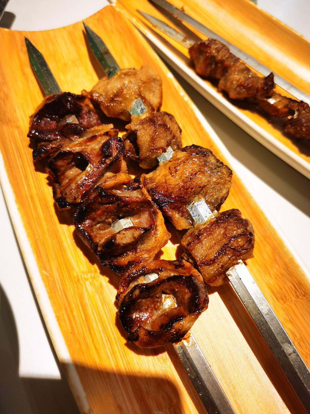 拌凉粉浸泡在红油里很是开胃,两个肉串、两个五花肉烤肝,香死个人呀。