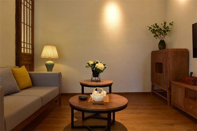 浣溪沙坐北朝南,是独立的院落式山居民宿。自然形成的山中水潭如碧玉镶嵌,“半坞白云耕不尽,一潭明月钓无痕”“肯与邻翁相对饮, 包括简居、溪谷、渟涧、禅意共17间客房,每栋院落出两到三间大床或套间亲子房。每个院落和房间都根据房屋朝向的不同和空间的大小设置了不同的风格,让每一个院落都占尽自然之势。