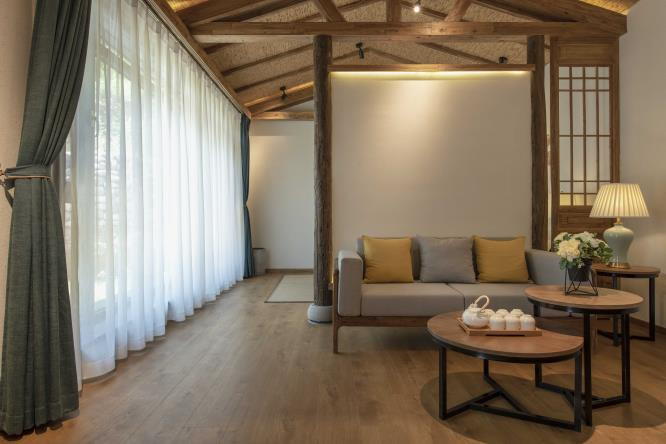 各处院落依据自然山势及环境,分布错落有致,既有独立私密的空间感,又有和睦邻里的亲近感,既有原生态的山水相伴,又有现代化的住宿体验。既可大隐于山,又可入世繁华。