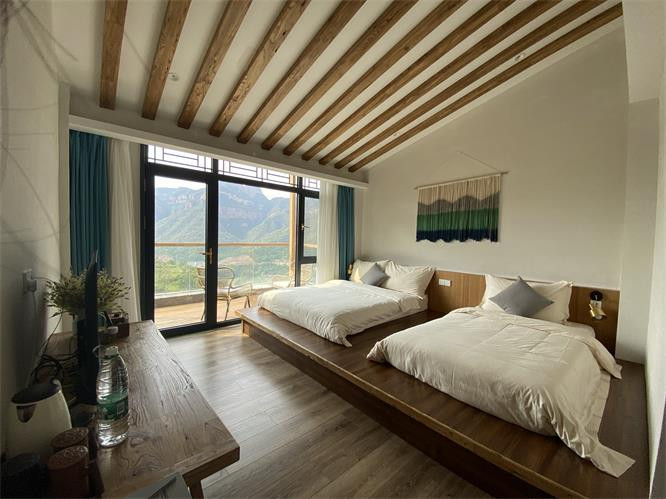 悬崖共有木屋18套,每个木屋房间内均配有智能设备及观境浴缸,每间房对应山林均为全景落地窗,室外超考平台,可观山林,听松涛。一套崖景木屋可同时容纳四组家庭或朋友集体入住,配备超级客厅及厨房餐厅,室外烧烤平台。