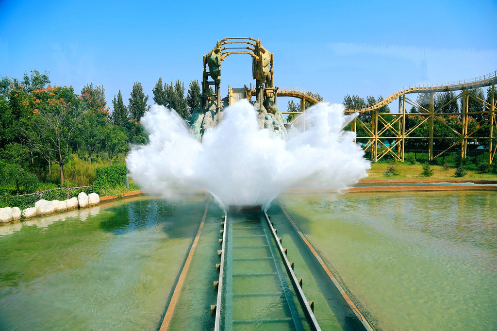 邯郸是成语之都,这个项目里全是四字成语命名,有着浓浓的中华文化特色。“高山流水”、“刀山火海”、“惊涛骇浪”等等成语场景,一会儿俯冲到悬崖之下,一会儿直冲云霄,仿佛也在过山车上,就像过山车一样身临其境。画面感超强。