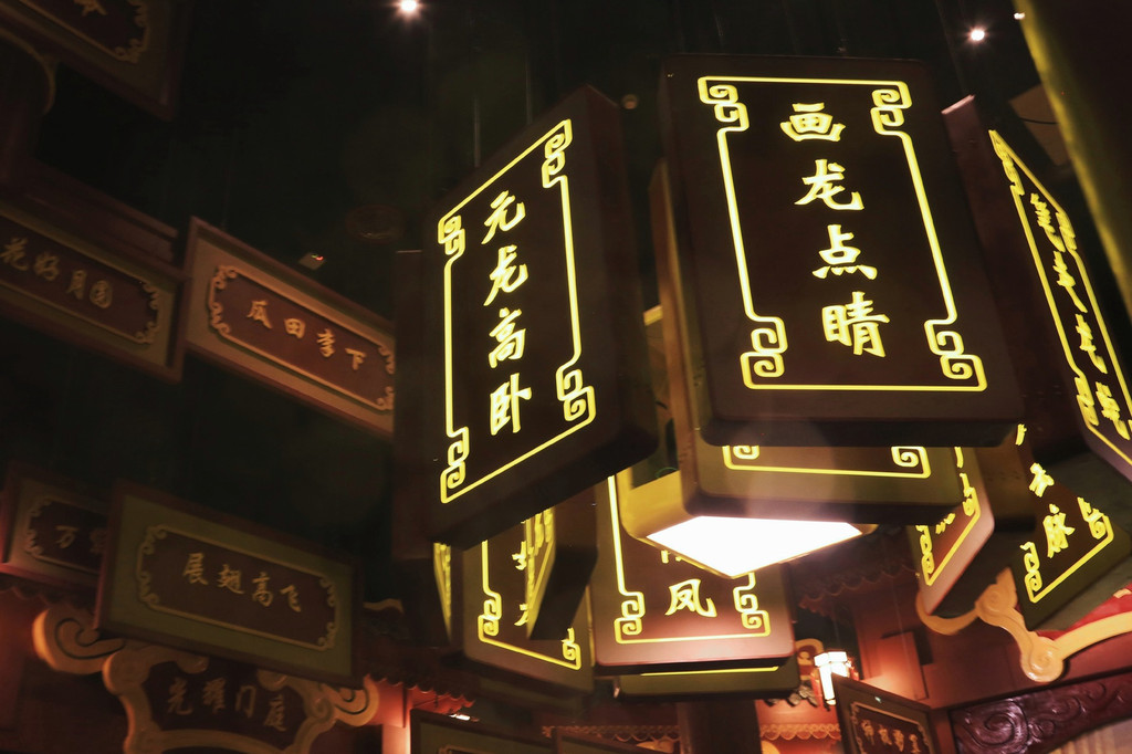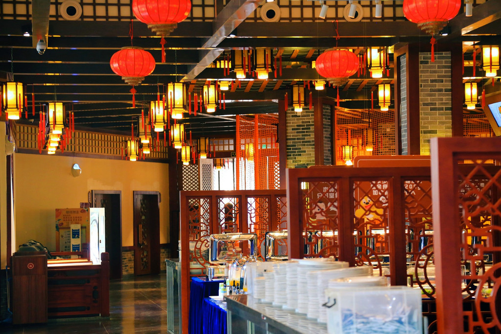 “八方来客”是园区最大的综合性中式餐厅,除了有古色古香的内部陈设、完善的基础设施外,就餐环境也是格外雅致。