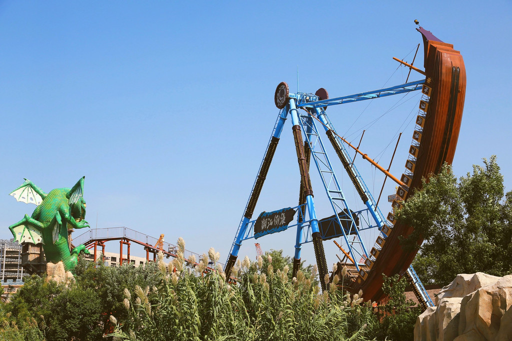 乘坐海盗船开始一段惊涛波浪之上的冒险之旅,时而冲上浪峰,时而跌入浪底,尖叫将伴随着旅途的全程,,如同加勒比海盗的冒险旅行,挑战我的极限,太刺激了。