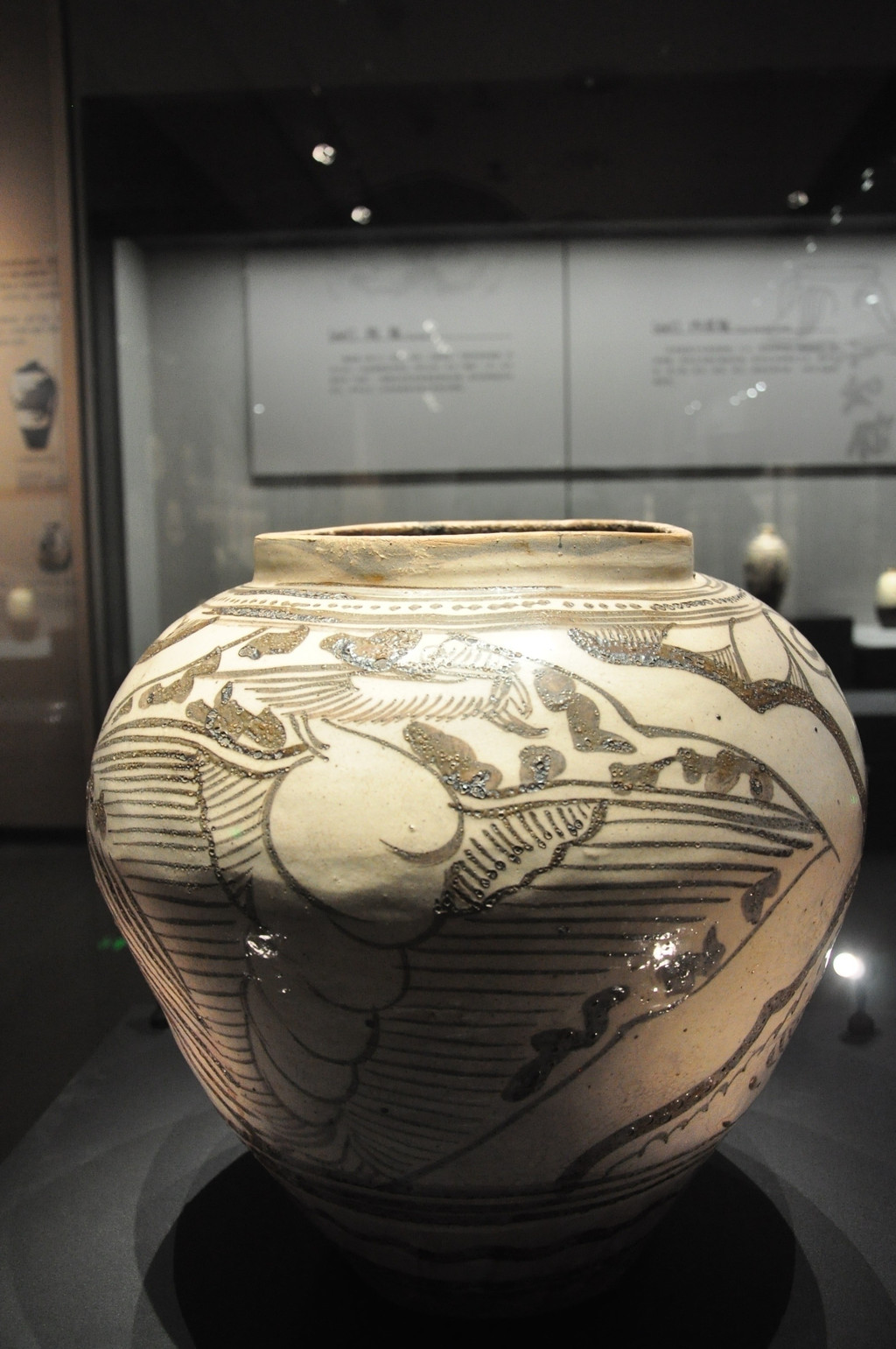 磁州窑是我国北方著名的民窑,位于今河北省南部的磁县和峰峰境内,因古代地属磁州而得名。磁州窑瓷器陈列共四个部分:第一部分 开篇序章——精美厚重的青瓷。第二部分 历史巅峰——白与黑的竞演。第三部分 北方瓷都——彭城窑大放异彩。第四部分 雅俗共赏——青花五彩瓷兴起。