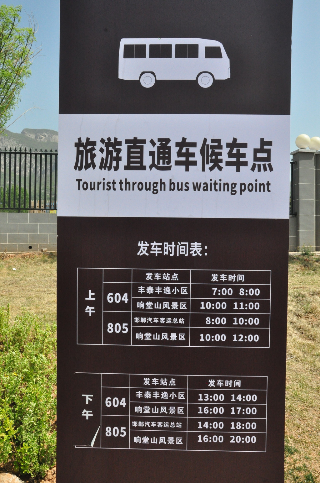 2023年4月10日早晨在酒店吃过早餐,将行李存入总台,7点50分乘66路到邯郸客运西站转805路前往峰峰矿区,票价每人8元。9点10分在铁路桥下车,再转2路车前往响堂山石窟景区,票价4元,公交车在一路口下车,还有3公里的路程要走。好在下车有机动三轮,每人5元,9点50分到景区,这一路不说花钱多少,几经周折,颇费时间和精力。由于交通不方便,怪不得许多游客不得不舍弃,我们在网上曾看到有直达公交到景区,实际上目前只有定时公交,每天只有四班,还是出景区后在马路边看到的站牌。