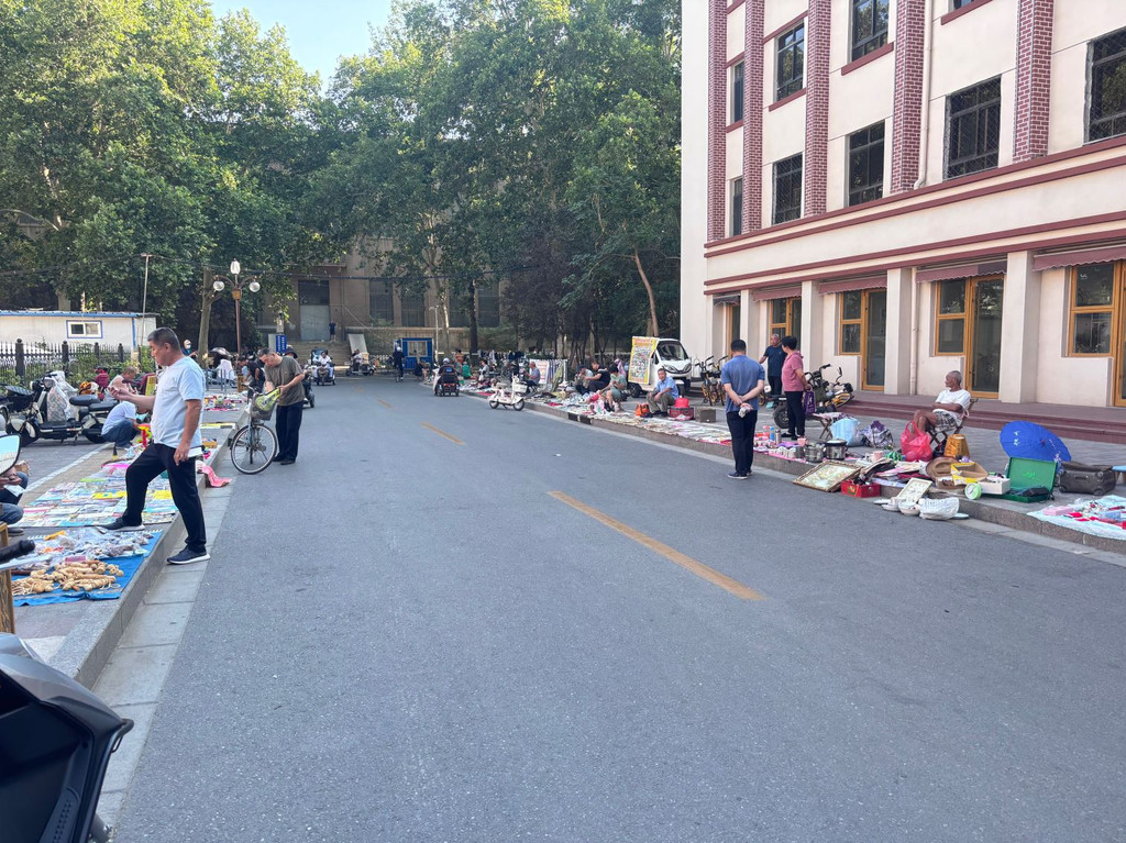 走到酒店下面,周末的摆摊市场已经开始,为了消食,决定去逛一圈。市场刚好就在酒店楼下,房间的床正对着市场。早上天微亮的时候就看到零星几位来人开始摆上摊了。这个时间,也就7.45am,两边街道已经沾满,以走,哎哟,这个二手市场还真长。