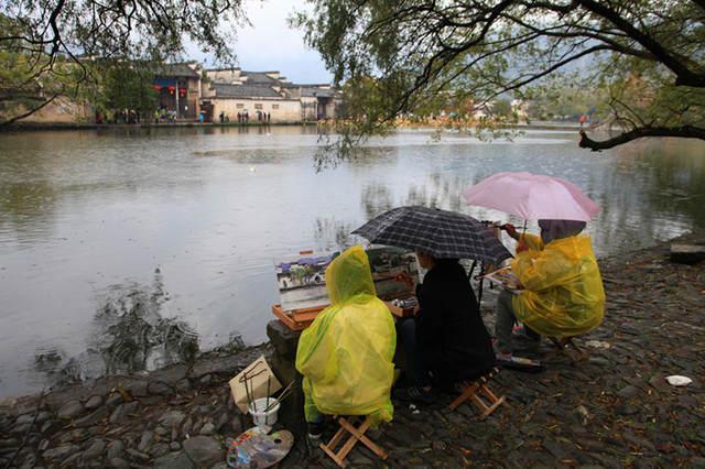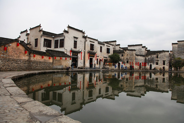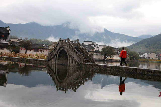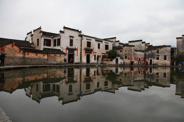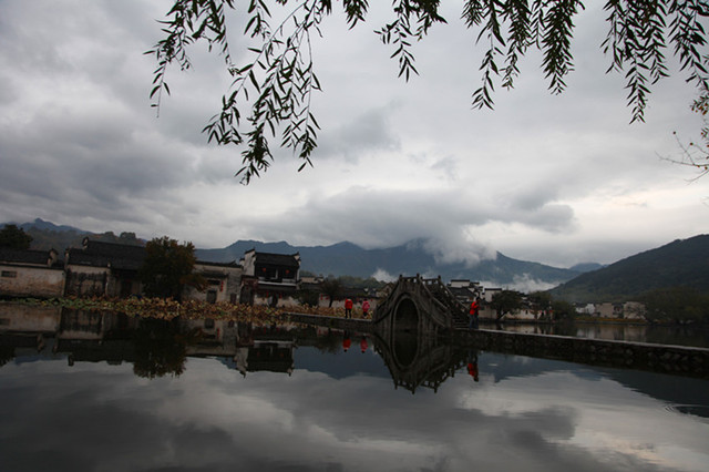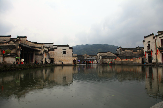 在阴雨连绵的时刻,在深夜的雨中,我带到了皖南的宏村,阴雨连绵对于旅行者来说,这绝对不是令人喜欢的好天气,然而对于这多情的黄山山麓来说,这又实在是一种奢望了,这里的阴雨天气总会给人一种身临仙界的遐想。在这个深秋的时节,时隔九年,我再一次探寻了宏村,就是像探望一位多年未见的老朋友一般,情切切,意绵绵,没有了拘谨没有间隙。晚上十点天气暗淡,宏村沉寂在了空净淡然的梦乡中,我的心情恍惚空洞了,在我蹑手蹑脚中轻飘飘的融入了宏村的环抱,因为我不想在这么细雨寂静的中干扰它的梦境,但矛盾的心情中又有这一种是否与它的梦同行的冲动。走在狭长的石板小路上,偷瞥着徽派的古建筑,忽然间我的灵光一闪,那一霎那,我分明看到了百年前古王朝的璀璨的星空。