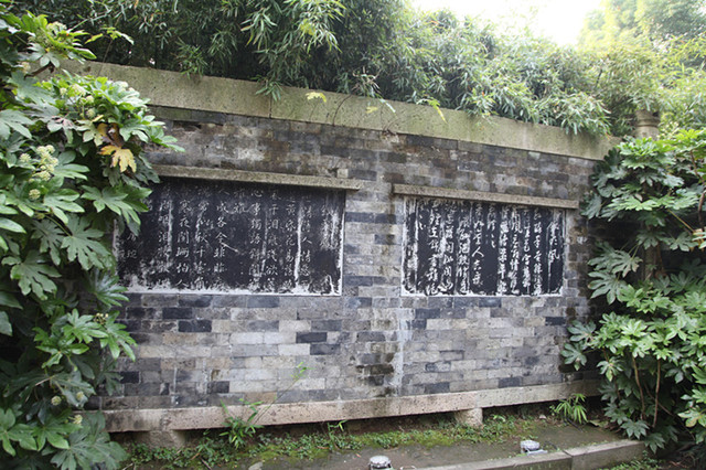 右军祠是纪念王羲之的祠堂,祠堂四面环荷花池,是康熙年间所建,这里主要看不同模仿版本的《兰亭序》。继续往西走,可以看到御碑亭,碑的正面是康熙皇帝所临写的《兰亭集序》全文,背面是乾隆皇帝游兰亭时即兴所作的一首七律诗《兰亭即事诗》,祖孙两代皇帝同书一碑,所以又称祖孙碑。祖孙两代皇帝同刻一碑,这是全国独一无二的,也是兰亭的镇亭之宝。