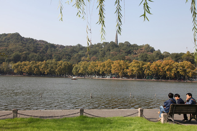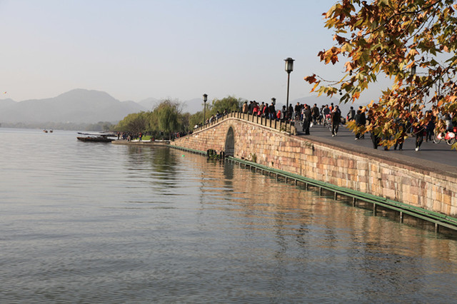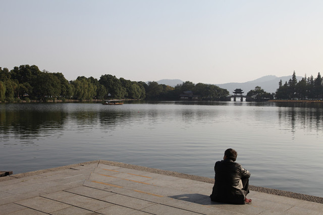 用“动如脱兔,静如处子”形容西湖怕是最好不过的了,晴好天气的西湖总是繁华似锦。花红柳绿的苏堤人来人往,夏日里接天连碧的荷花池阵阵香气宜人,虎跑边泉水叮咚、取水泡茶再惬意不过,还有充斥着香客的灵隐寺飘着袅袅香火,时不时的一辆红色的自行车从街道或山路边飞驰而过,带着这个旅游城市所特有活力。阴雨天气的西湖却又是另一番风情,如铺展开的画卷,连绵的风雨将山水堤桥都染上一层晕开的淡墨。断桥上撑伞而望的身影仿佛是等着许仙的白娘子,南北高峰隐现于薄雾轻岚之中如幻如梦,南屏晚钟在雨幕中悠然回荡,雷峰塔在夕阳下衬着湖面的光色如传说般神秘。