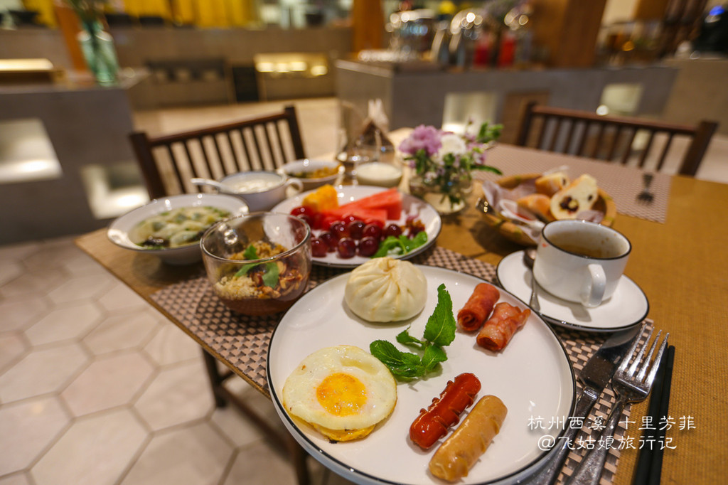 西湖藕粉,煎蛋,烤肠,烤培根,馄饨,白粥,面包,水果,咖啡....