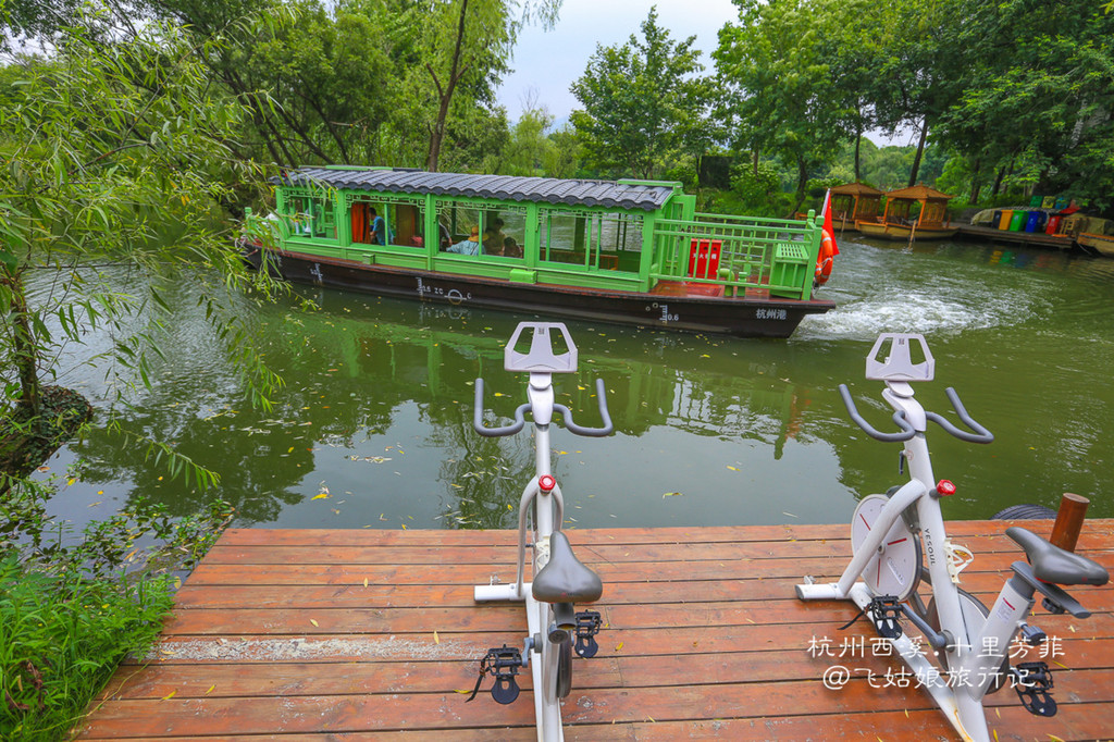 码头还有健身单车,跑步机等健身器材,闲暇之余还可以一边欣赏西溪美景一边健身。