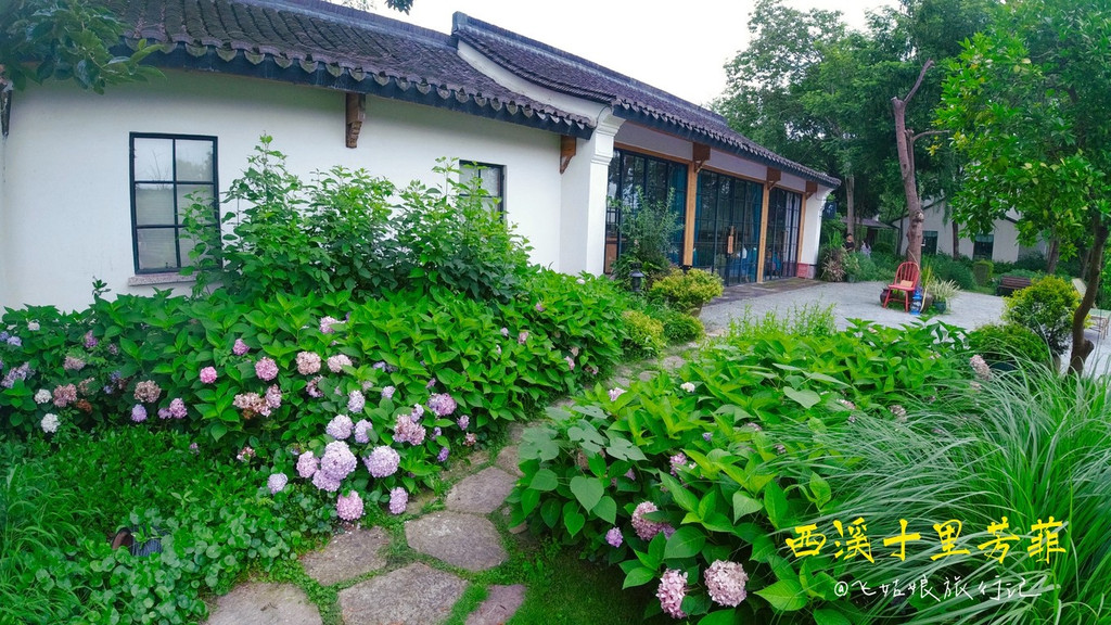 这段时间绣球花盛开,一路芳菲,美如仙境。