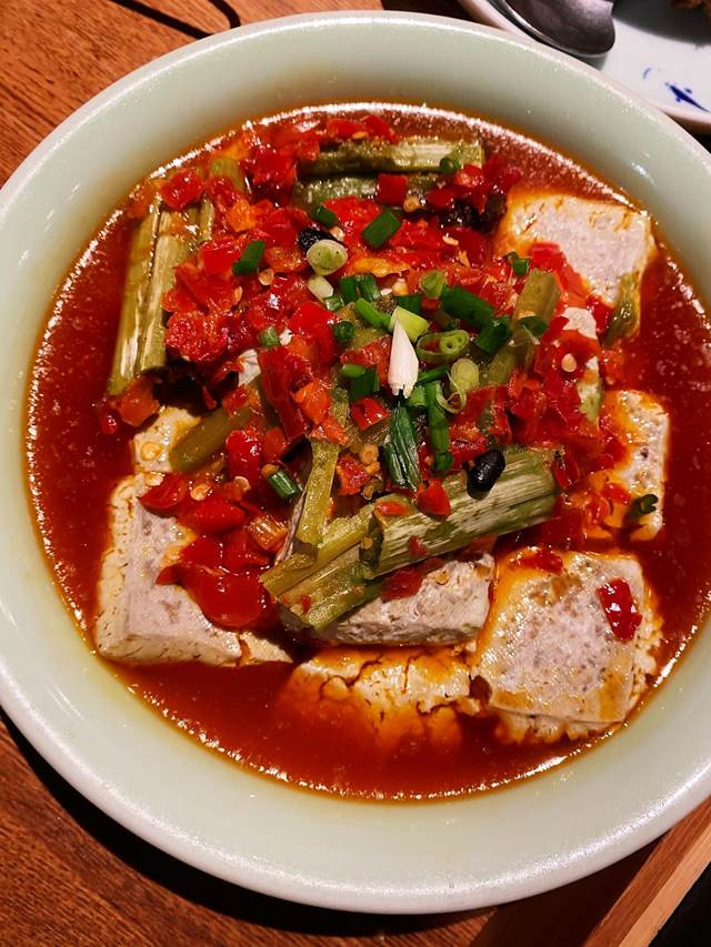 还吃了他们家的豆腐。外面看着跟丸子一样,里面其实是豆腐。味道还不错。