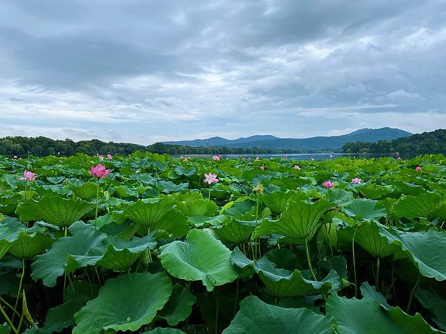 这一天又去了曲院风荷。这里的荷叶看上去也更大一些,花儿开的也很艳丽。所谓接天莲叶无穷碧,大概就是这个景象了。