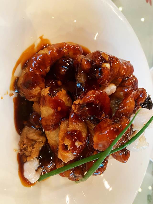 龙井茶酥特别好吃,是我尤其要推荐的一道菜,而且也是店里的招牌。
