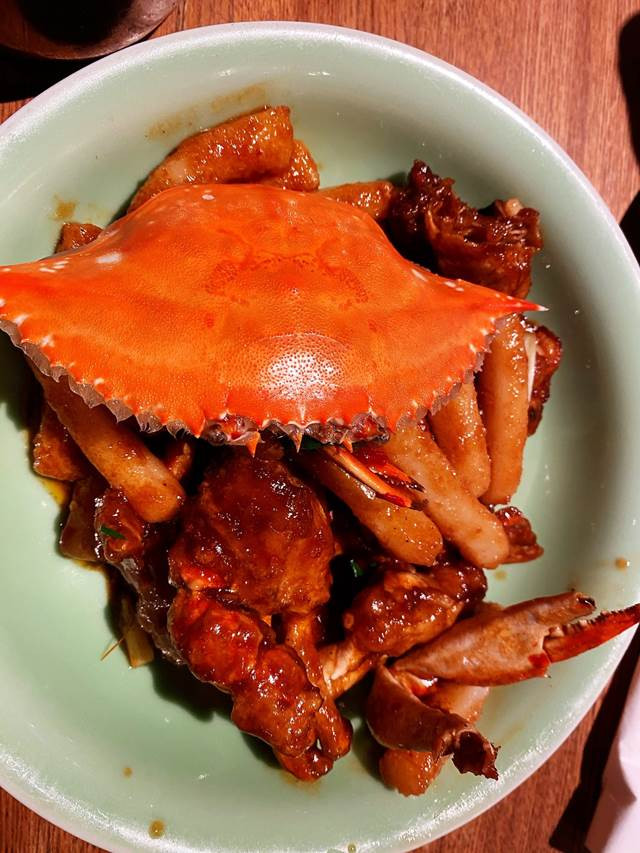 梭子蟹炒年糕味道不错。蟹很大,年糕也很好吃。