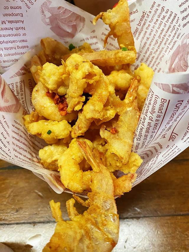 蛋黄基围虾,蛋黄鸡翅,而且好像都用的咸蛋黄。