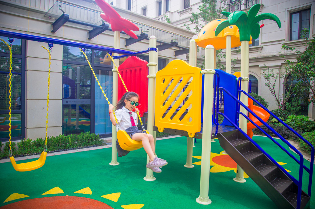 路过室外的游乐设备,小女生忍不住荡了一会秋千,脸上的笑容是送给父母最好的礼物。
