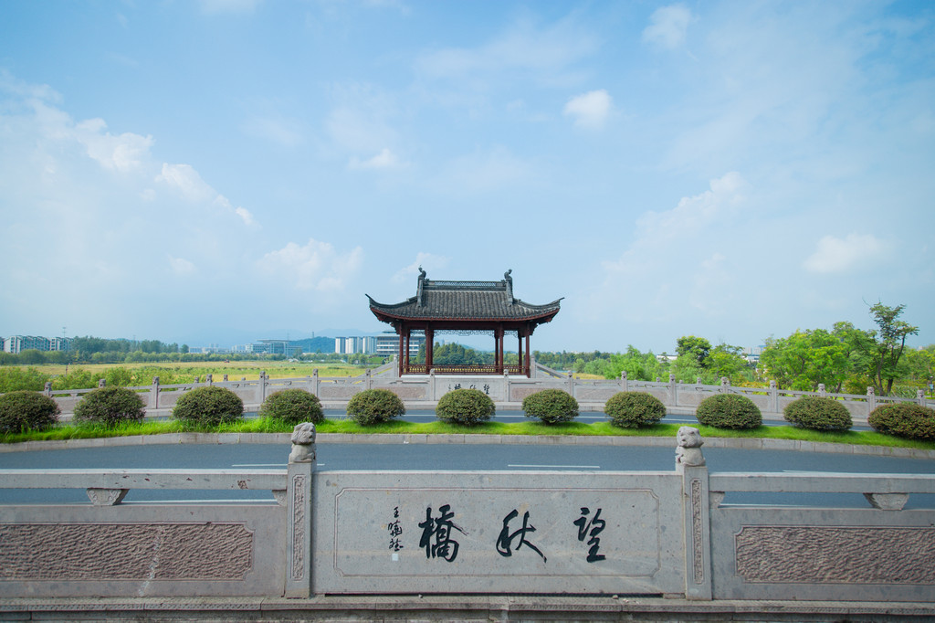 蓝天白云下,从湘湖花海走过望秋桥,一路的风景已有了丝丝秋色的味道,不负了这座桥的名字。