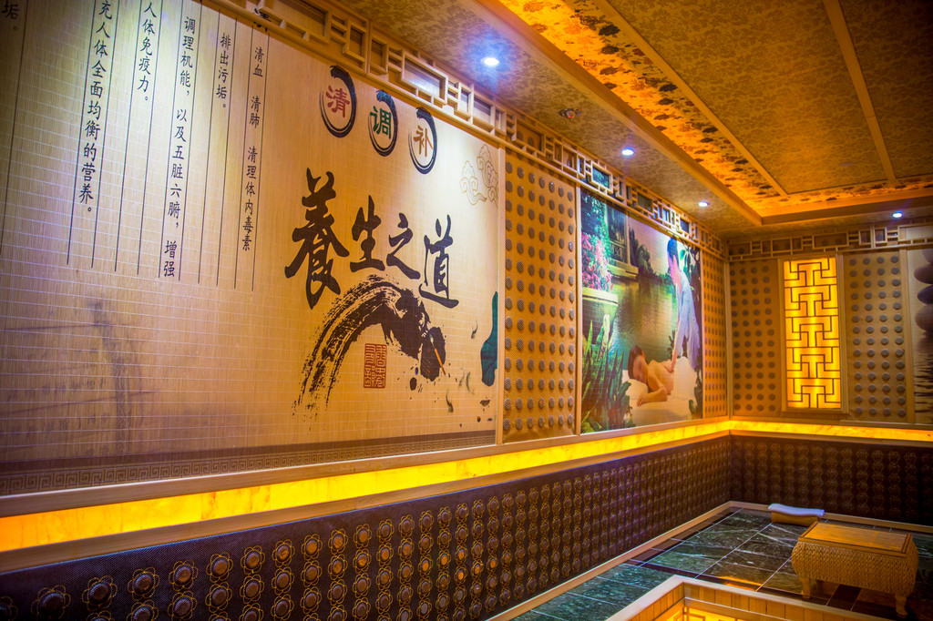 在房间休息了一会,把晚餐消化了一下,洗了个澡,就前往养生中心的玉石能量房蒸一蒸,躺在37度的石板上,闭目养神,缓解了一天的疲惫。