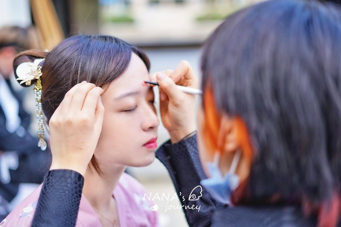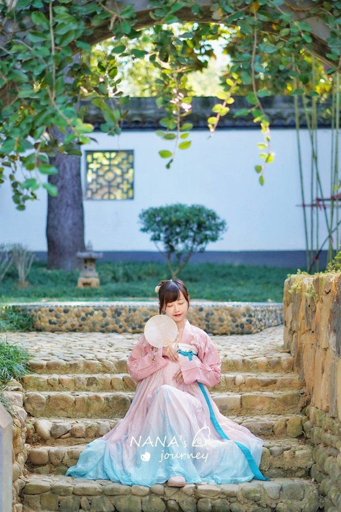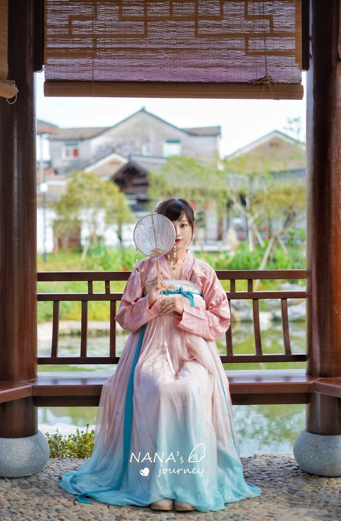 就比如我,特地过来享受一回古风造型服务,色彩选的是我中意的粉嫩色调,齐胸的襦裙能彰显活泼的气质,盘起的发髻配上蜻蜓的古风配饰活灵活现,整个人都充满着灵气~