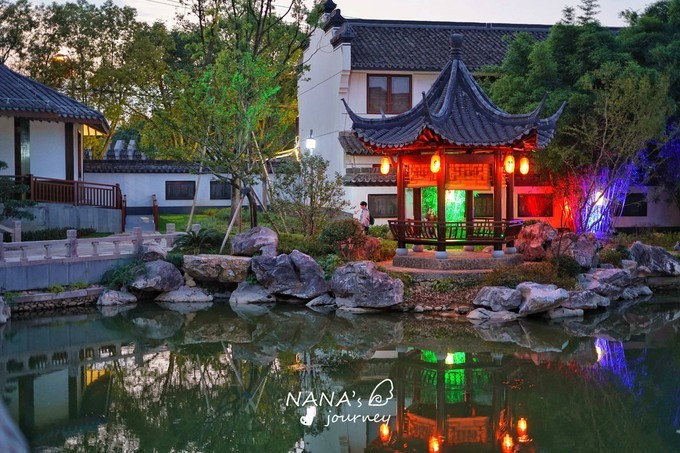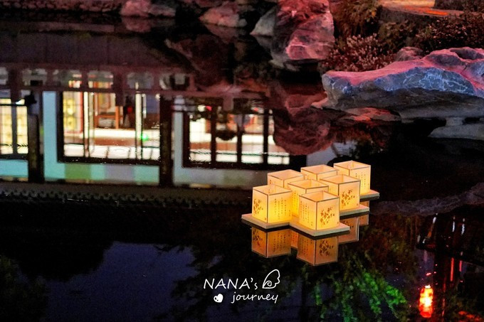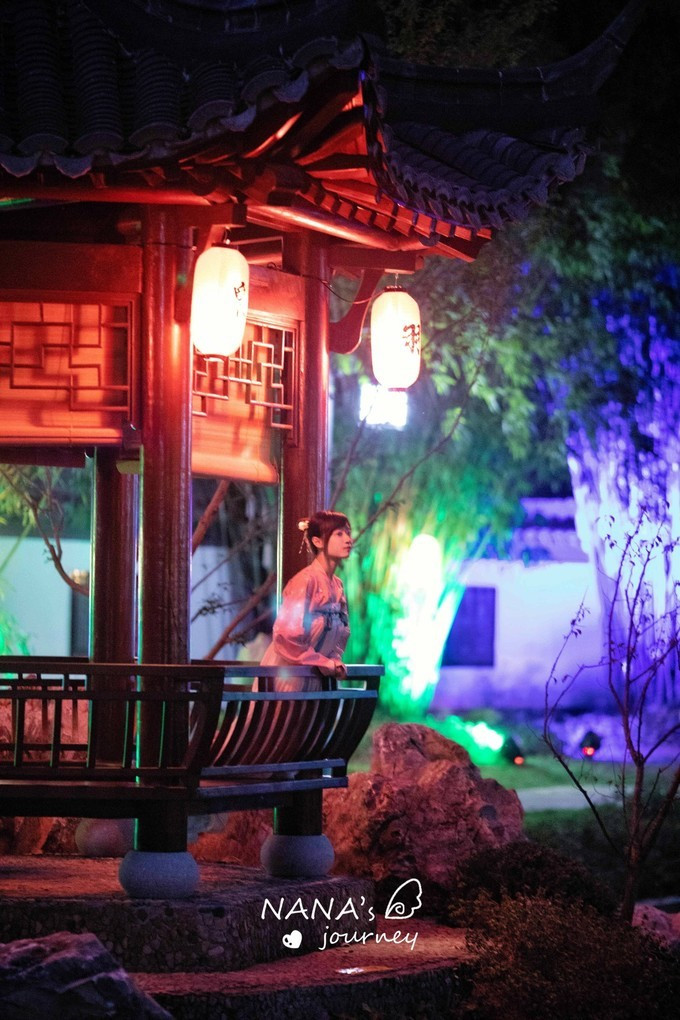天色渐渐暗了下来,园中的灯笼逐渐亮起,今天是中秋之夜,中秋夜游真是别出心裁的一种体验了,特别还是古风版的。曾经看过无数古装片中,中秋之夜的灯会羡慕不已,如今就在眼前。