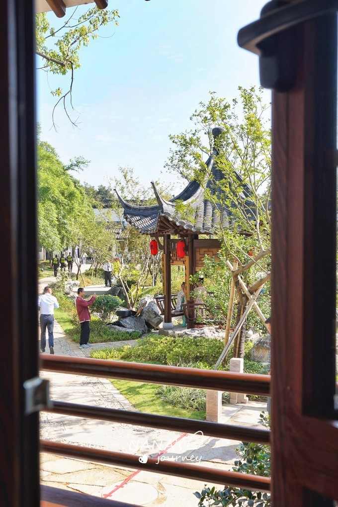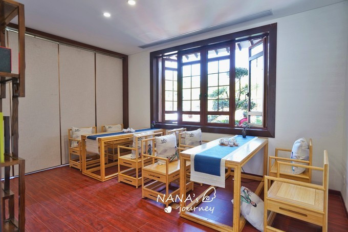 整个房间都拥有全面木制落地窗,而窗外是小型山水美景,内呼外应,宛如在古代的建筑之中。