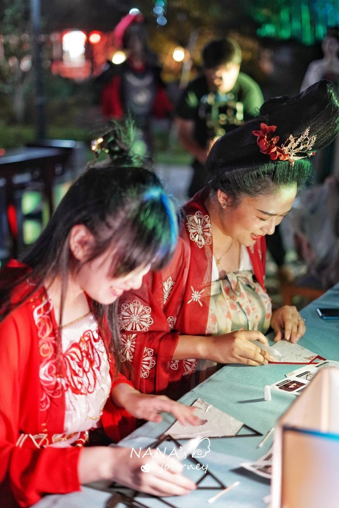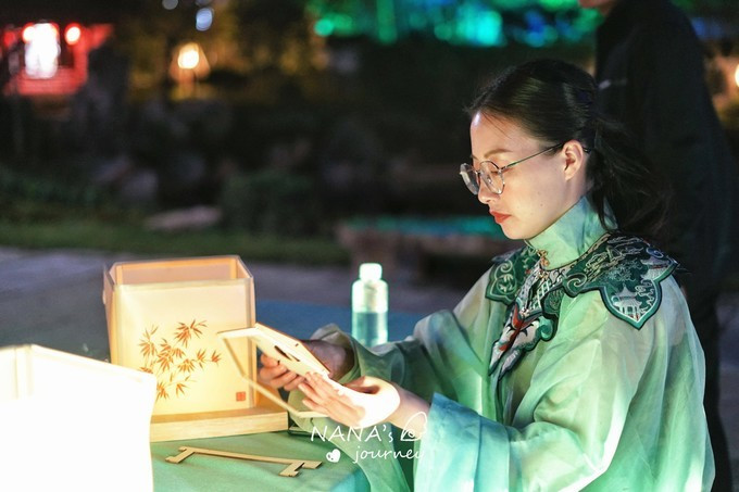 夜晚总是美妙的,微醺的调子中,大家热闹地游园,猜灯谜,做花灯,祈福,中国特色古风中秋,也许就该是这般美好的样子吧~