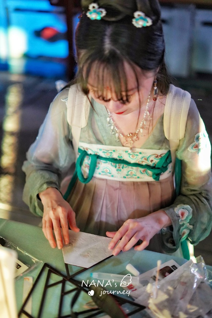 我们一致评价最有唐风韵味的这位小姐姐,充满杨玉环的气场,带领大家制作花灯。