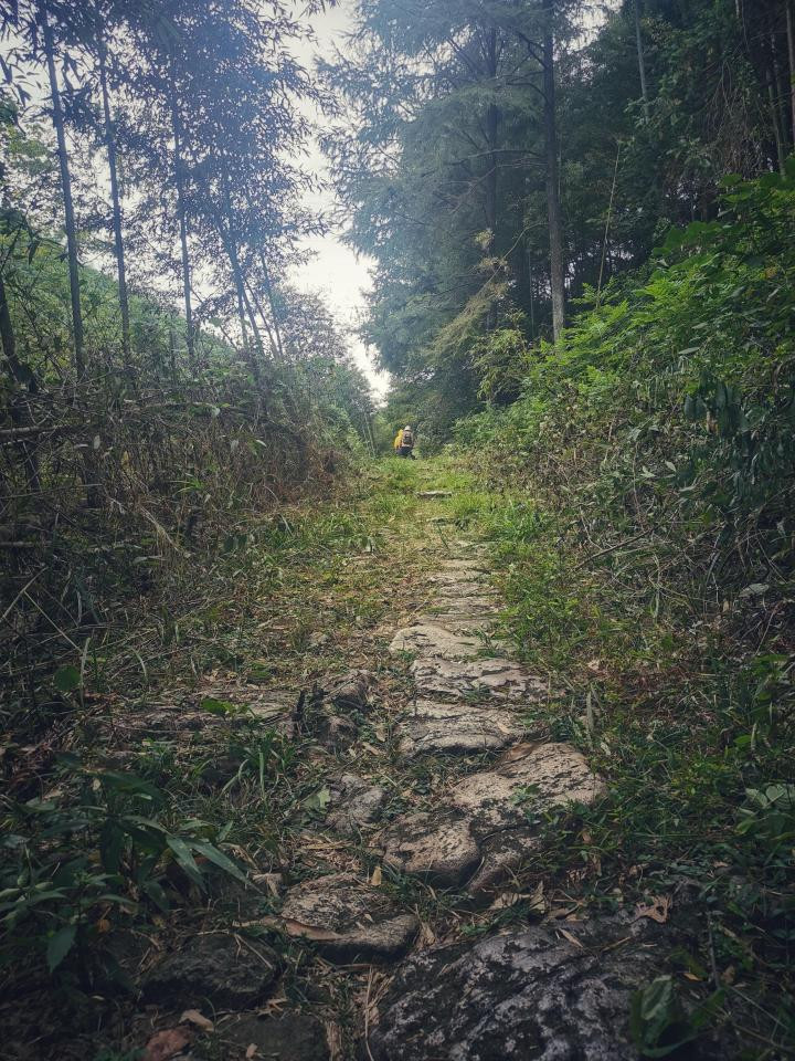 行进过程中,我们所有人排成一列,在老乡的带领下,穿出古驿道,到达釜拖山脚下的村庄。