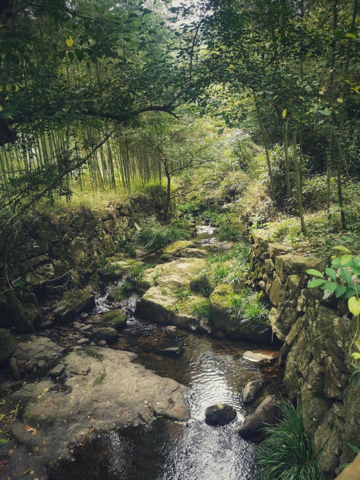 整段路程中,看不到现代建筑,只有石块铺成的路径,以及不时出现的潺潺的溪水,和两边的翠竹。