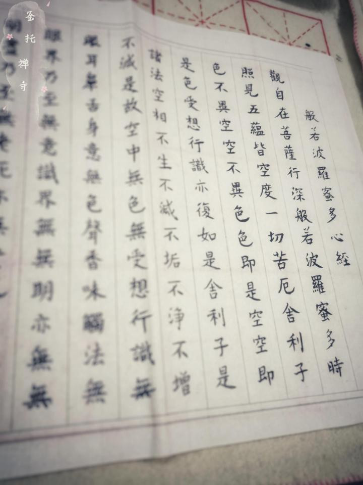 下午的行程就简单很多,手抄心经。与我而言,手抄心经倒不是第一次,有时内心浮躁,想安静下来,不知道如何当大脑停止思考的时候,就会选择写字,抄心经。