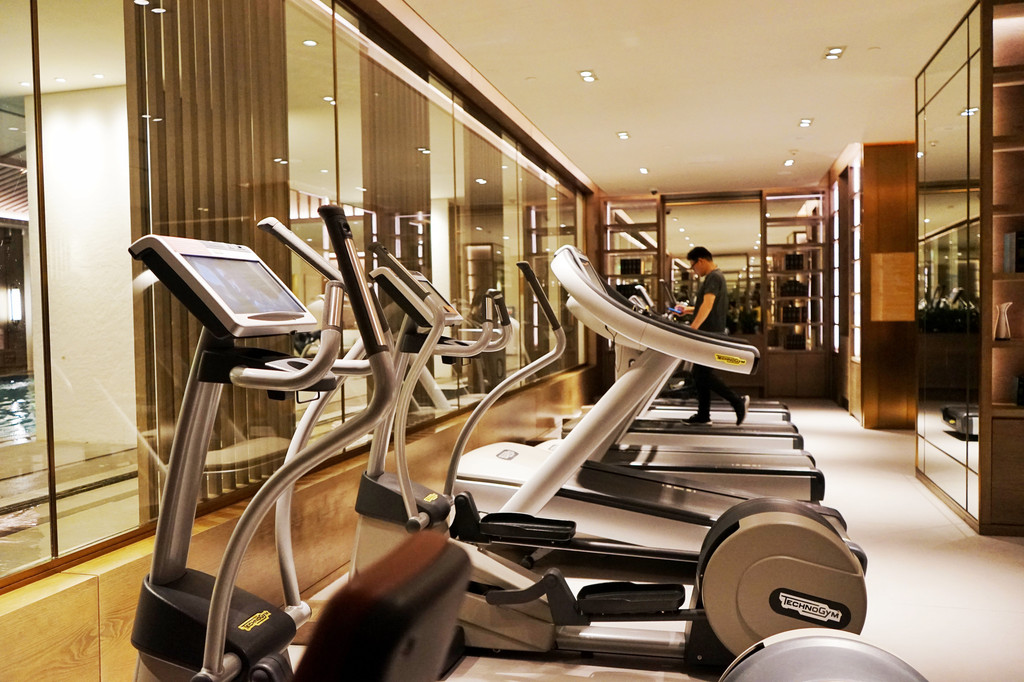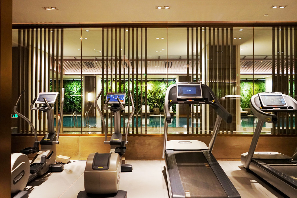 在地下一层,这里有20米长的恒温游泳池、水疗喷雾按摩池和健身中心。