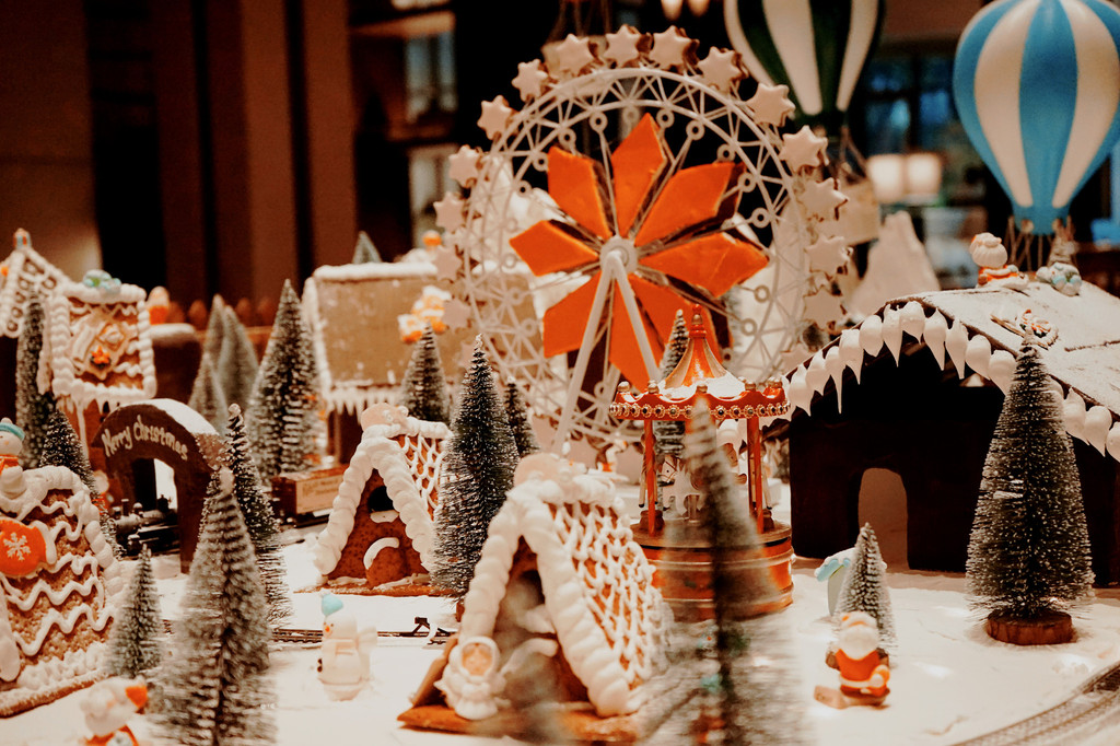 因为快要圣诞节了,酒店的圣诞氛围十分浓郁,各种圣诞装置、摆设等,看起来很漂亮、洋气。