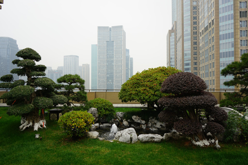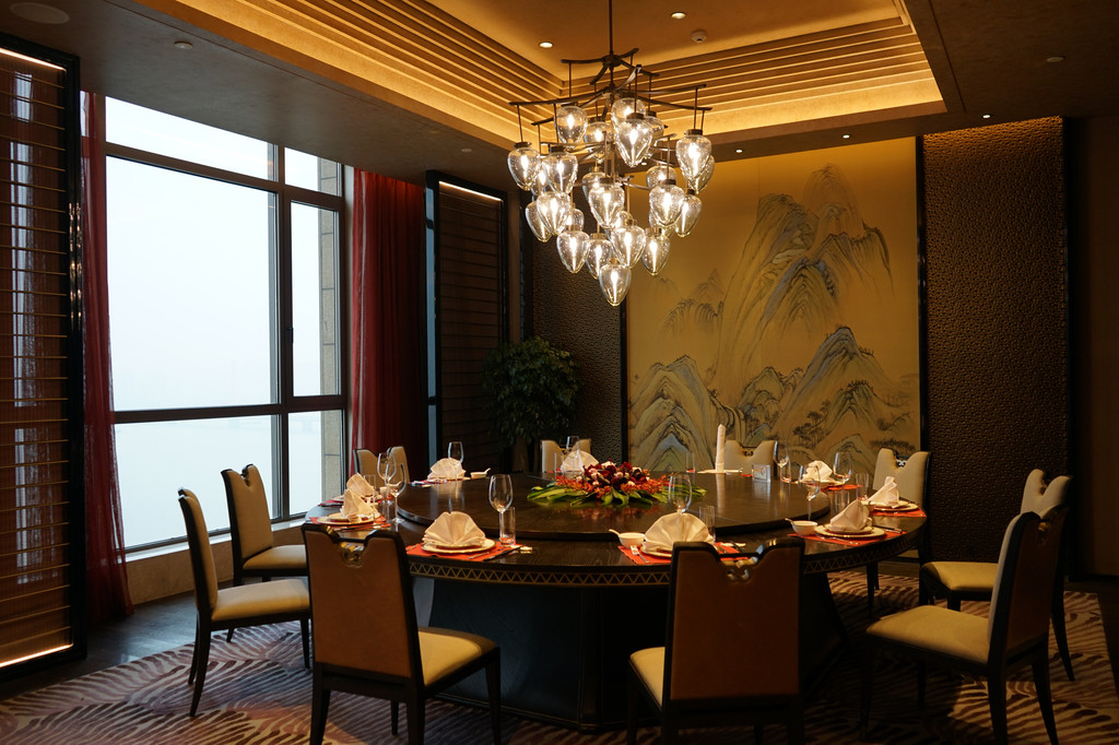Villa Hangzhou位于18楼,可提供驰名中外的钓鱼台菜,260平米的场地被设计成府邸会客厅,配有中式家具,用餐区可放置24人圆桌,从这里可眺望钱塘江江景,两台从一楼直达的电梯为贵宾提供私密的用餐体验;Villa Hangzhou可以漫步到毗邻的中式空中花园,这座680平方米的江南园林,小桥流水、亭台楼阁一应俱全,是举办私宴的绝妙场所。