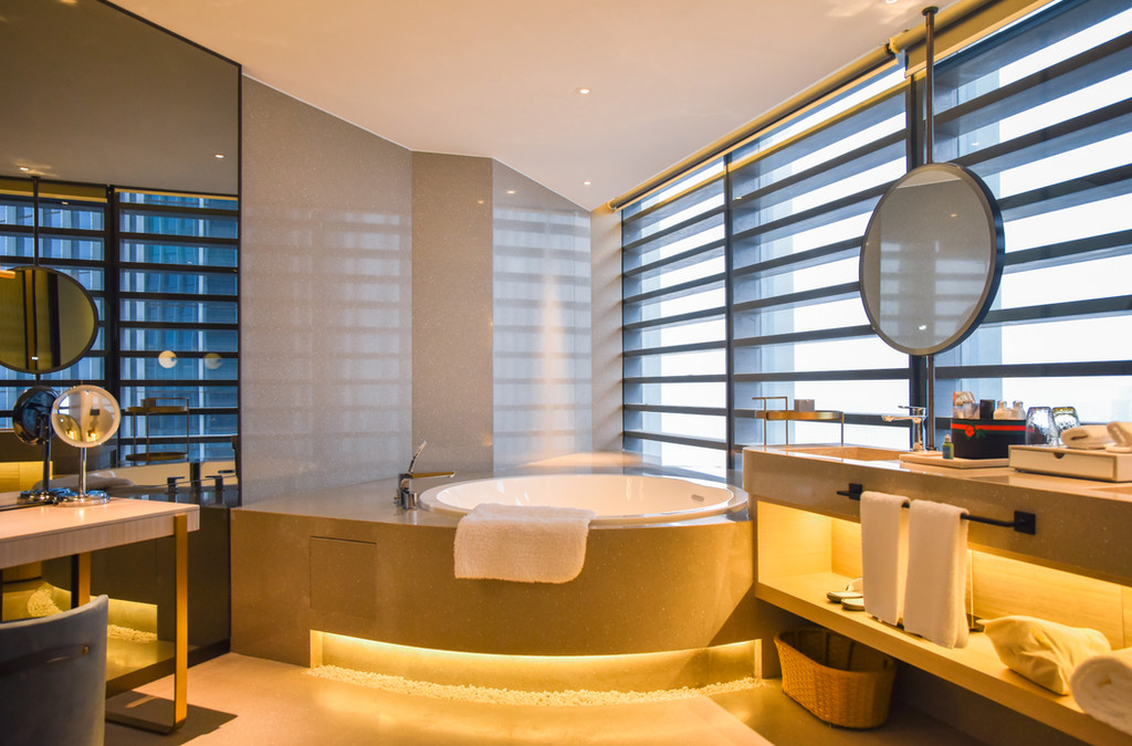 临江圆形浴缸也是酒店一大特色,想象一下,早上从柔软的床上醒来,在浴缸里泡美美的澡,换上舒适的浴袍,享受一下 In room dining,仪式感十足。惬意的坐在窗边,欣赏杭城美景,惬意的小资生活瞬间而来。