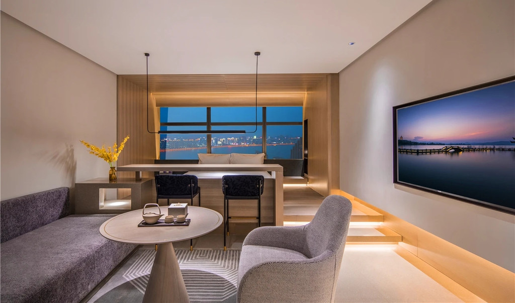 走入房间内,时尚气息与低奢雅致的碰撞,极具符合现代人群的极简审美,木色的内饰与浅色调遮光飘窗,营造出雅致格局,让人旅居在外也能拥抱如家般的暖意。科技智能化空间系统,随处可见的智能体验,在充分享受美景的同时,带来不一样的便捷高效体验感和私密性。每一个房间都能欣赏不同的主题和城市景观,每一个房型都有极其特色的地方。