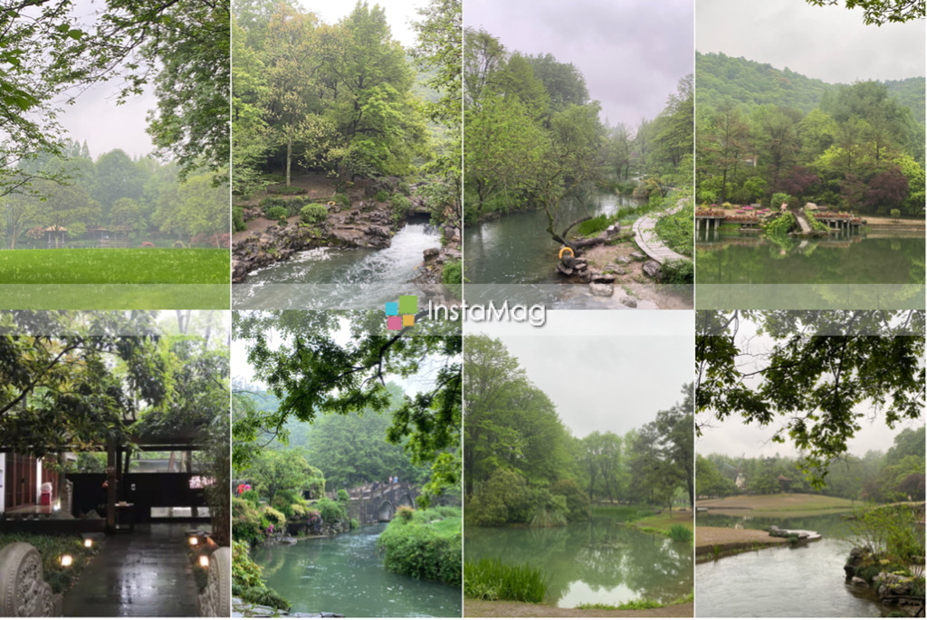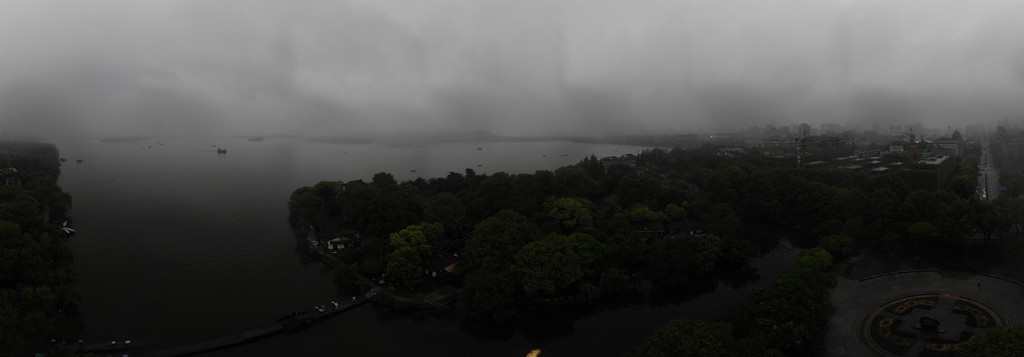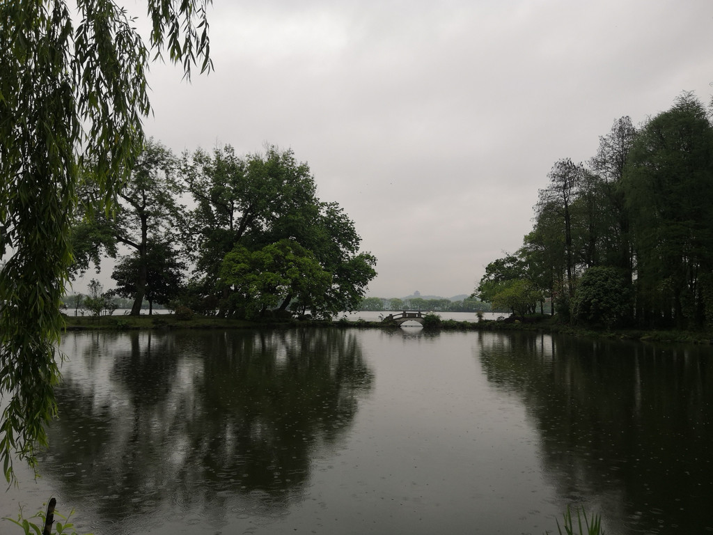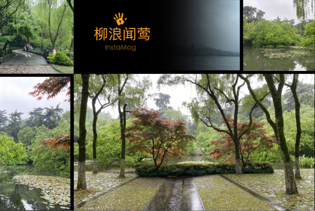 索菲特西湖大酒店,起初我们预定,还冲着要见识一下它的空中花园,全露天180°西湖美景,ting和ying一早去过了,ping和我则是在餐后,在六楼的花园,我们雨中放飞了无人机,拍摄下山色空朦水如烟的西湖。