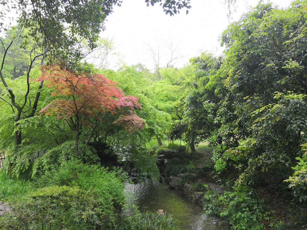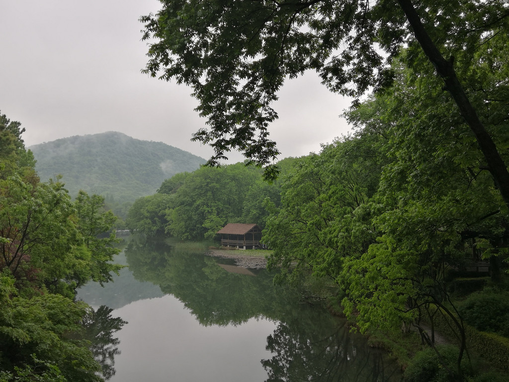 溪中溪周遭,横竖有游山岔路从龙井来,往钱塘去,我们所选不是逆行溯源龙井,而是顺道往钱塘六和。一旁观光车站老司机,赌我们不认路,手势在问,你,你,你,你,有借力上车去徐村的么?我们四个?痴汉,走你,靠车不如靠己!也有气质如兰的佳人,独自,远在另一边的林地小亭歇息。