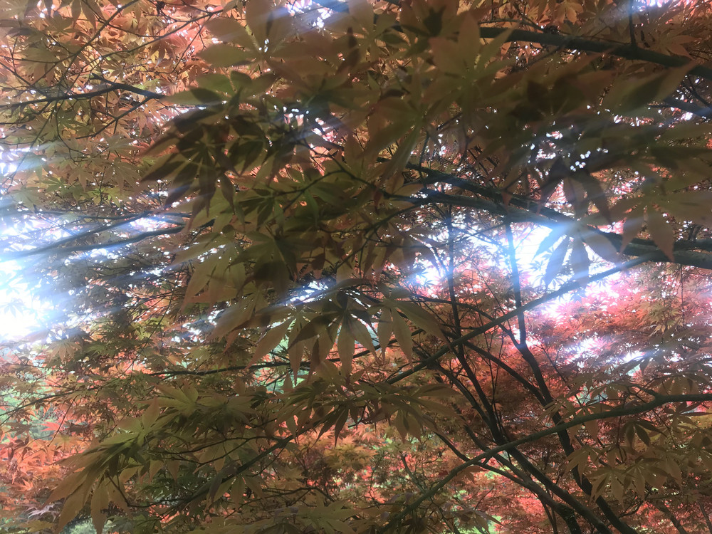 我们一见杉树,植于山地,又见杉树,立于溪涧,直到清雅的理安寺,所见才有红枫一袭,松干一柄。理安寺,为临安名刹,又名涌泉禅院,我们从山门入,从坡道出,目光掠过弥勒殿、大雄宝殿,注目的只在法雨亭。